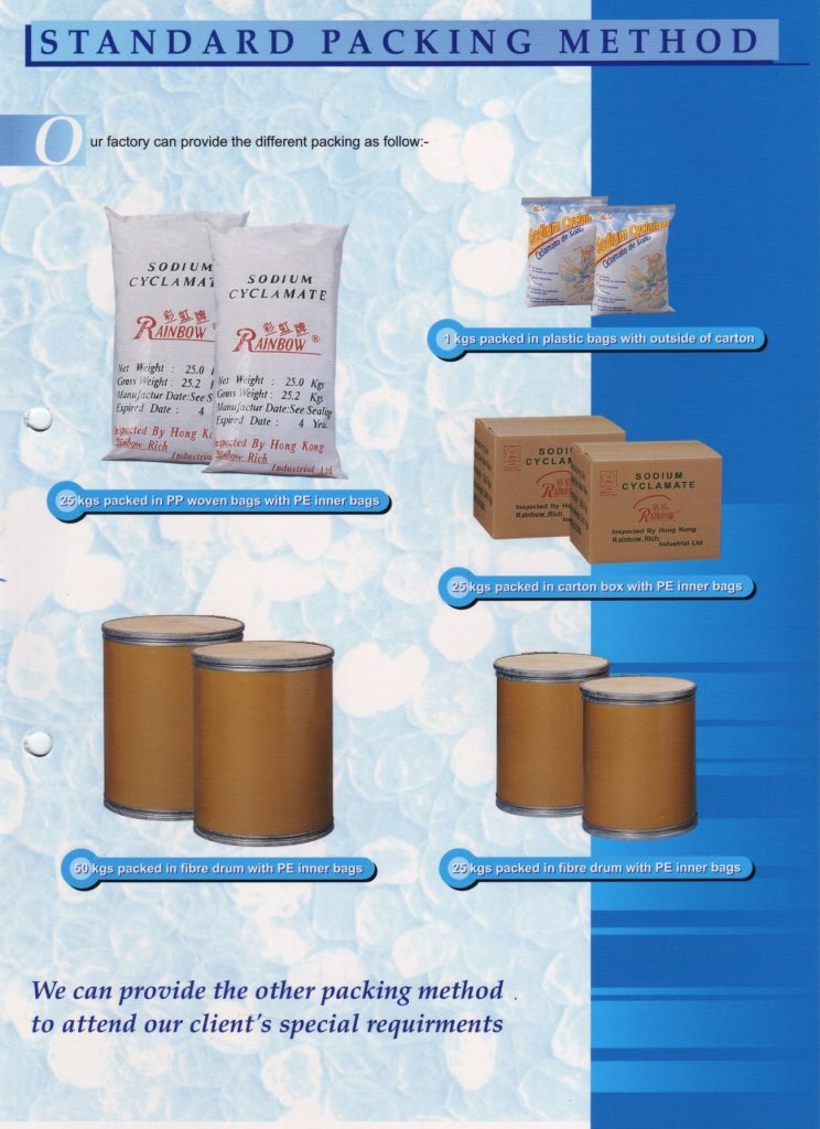Being one of the world’s largest producer of sodium cyclamate, we are constantly undergoing expansion and development to meet the projected growth in cyclamate usage.  Moreover, we work hard to assure that our products meet the standards of Halal, Kosher, HACCP and ISO 9001.