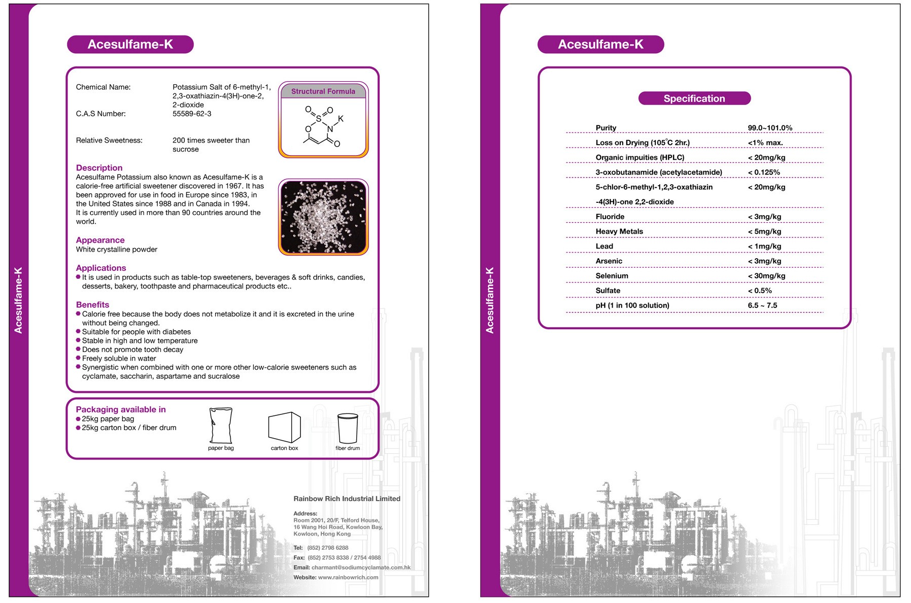Feature Good solubility in hot and cold water Sweet & Pure (no bitter or other unpleasant aftertaste) Good stability under heat; can be used in thermal treatment like pasteurization Economical – minimal quantity provides high sweetening effect